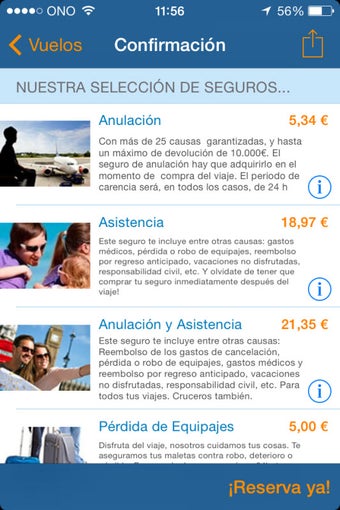 Otro detalle interesante es la posibilidad de adquirir billetes de avión con seguros de anulación o pérdida de equipajes. En todo momento verás los precios.